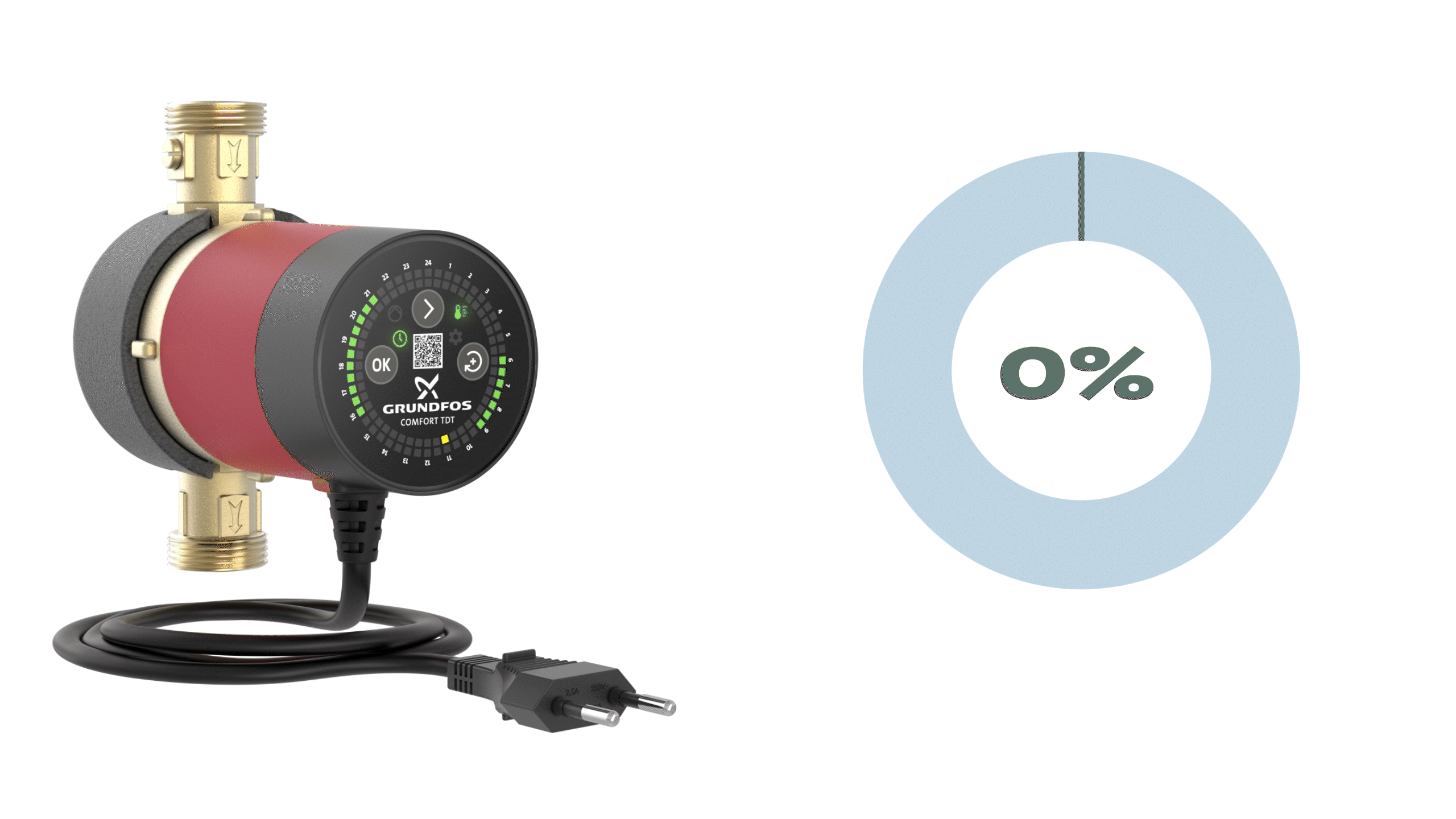 Mit einer Grundfos COMFORT Warmwasser-Zirkulationspumpe für Wohngebäude entfällt das Warten auf warmes Wasser an Wasserhähnen und unter der Dusche und Sie können mit sofortigem warmem Wasser einen Hauch von Luxus erhalten.